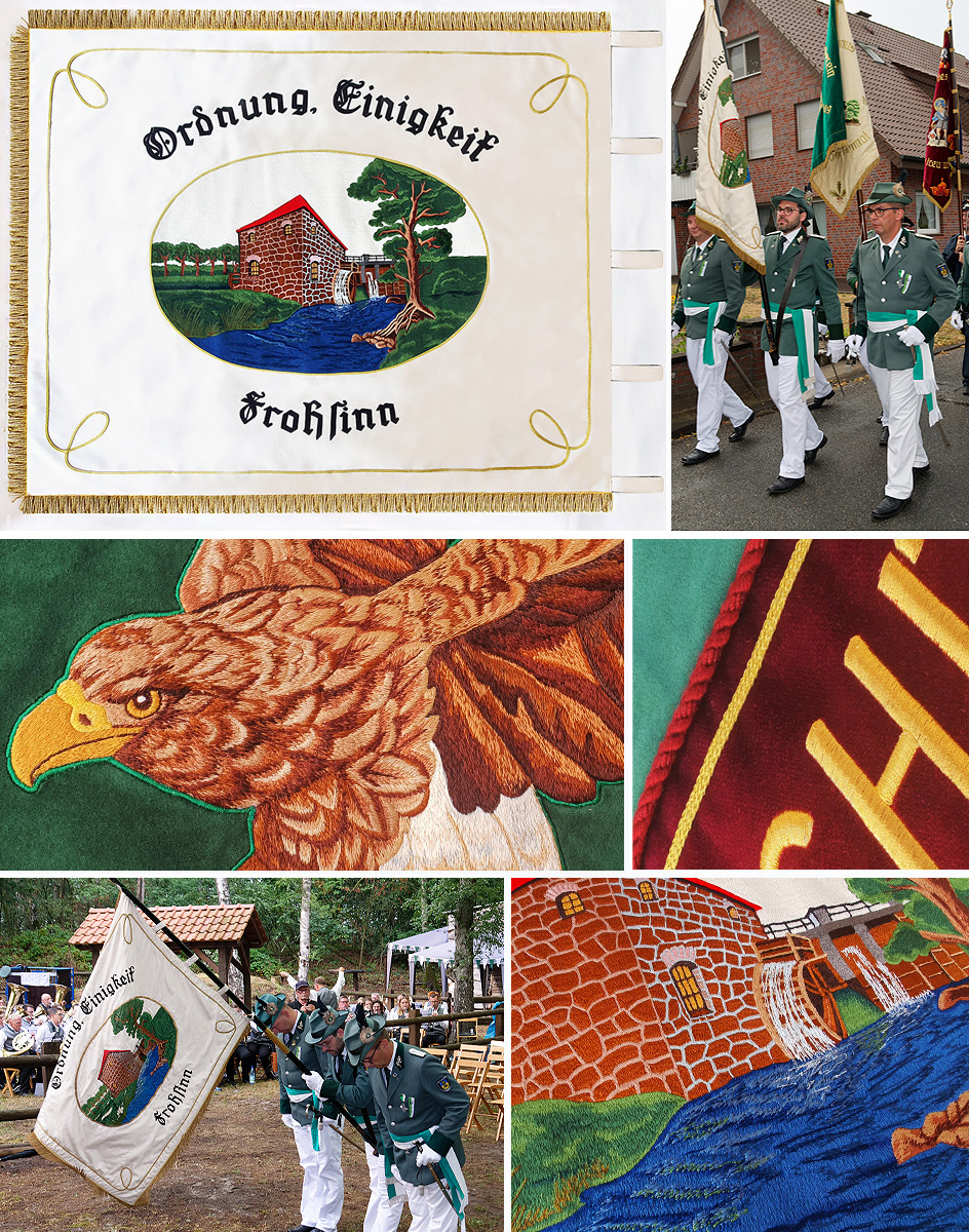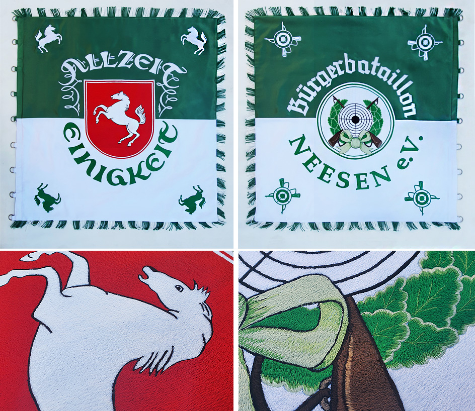 Gestickte Schützenverein Fahnen, Gestickte Schützenfahnen,